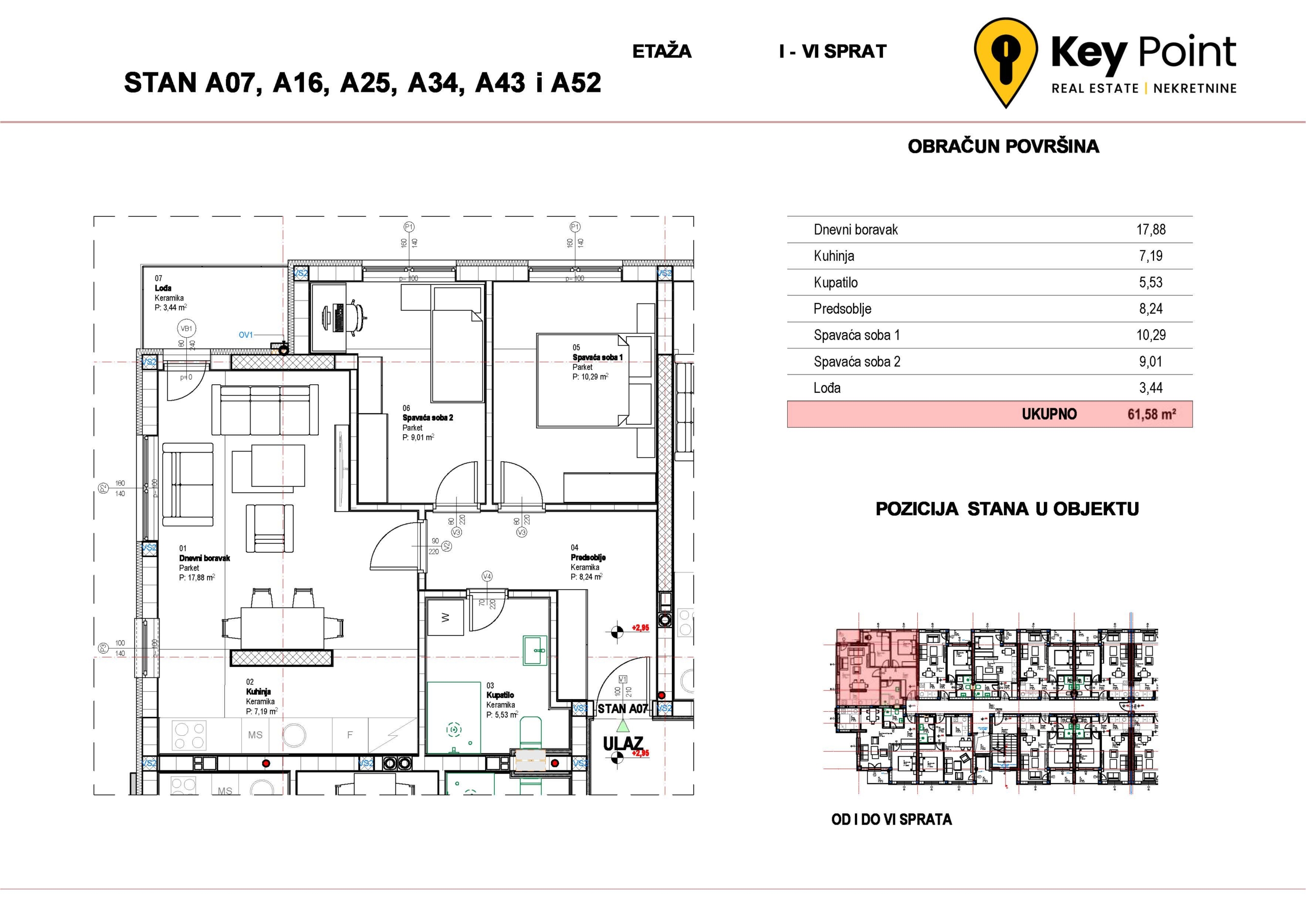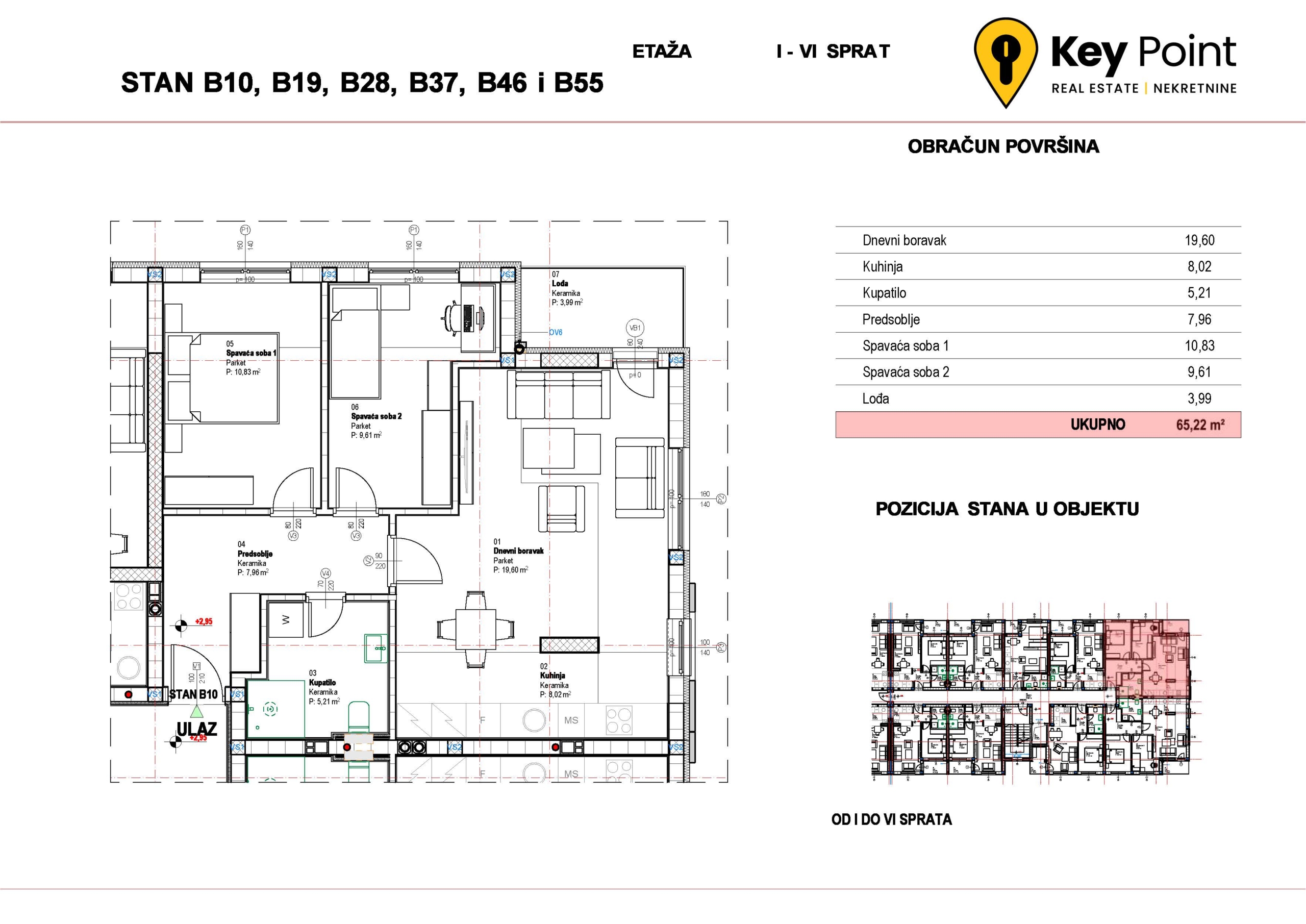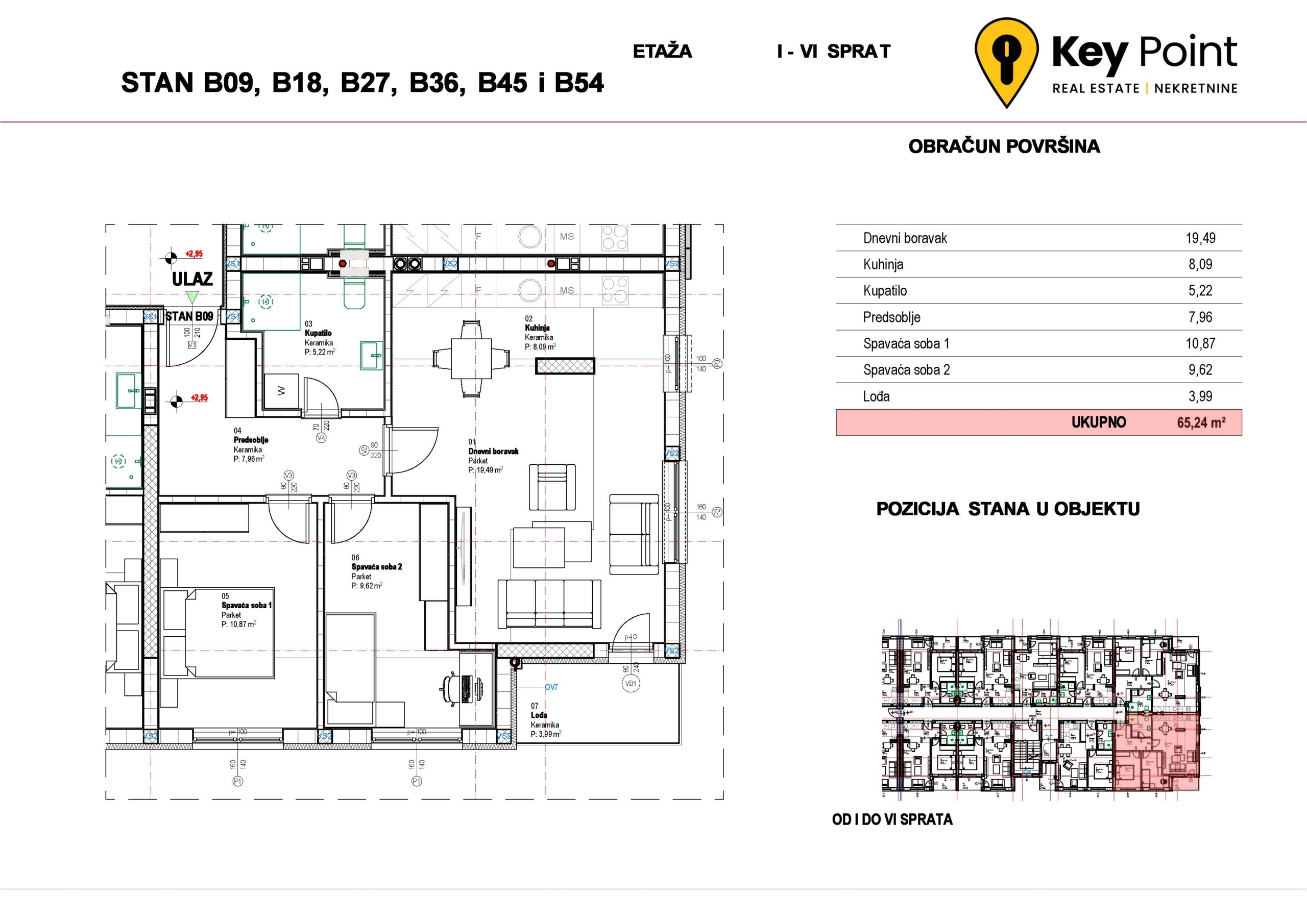 Kvadratura nekretnine 62-65 m²