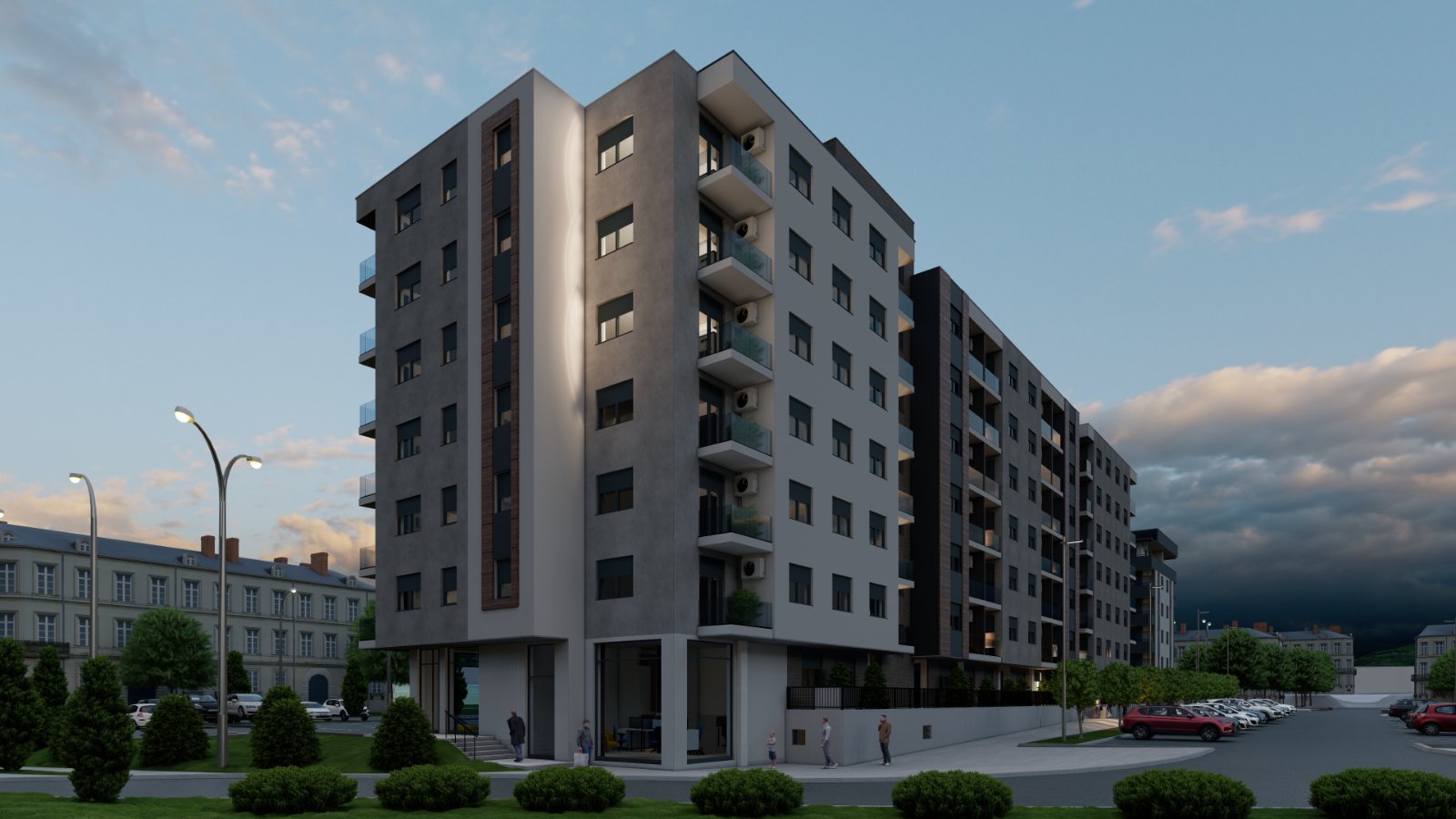 Zgrada se gradi u Lukavici, u blizini autobuske stanice i LIDL-a. Struktura zgrade je suteren + prizemlje + 6 spratova. Zgrada će imati lift. Planirani rok završetka radova je kraj 2026. Trosobni stanovi su površine 62m2 – 65m2. Grijanje će biti putem kotlovnice na plin u sklopu zgrade. Postoji mogućnost kupovine parking mjesta u garaži u suterenu.